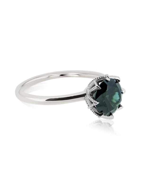 Embrace timeless elegance with our Dark Sapphire Lotus Ring. This exquisite piece is crafted from 9ct white gold and features a round dark blue with hints of teal sapphire. Its timeless design and delicate details make it a perfect accessory for any occasion, adding a touch...