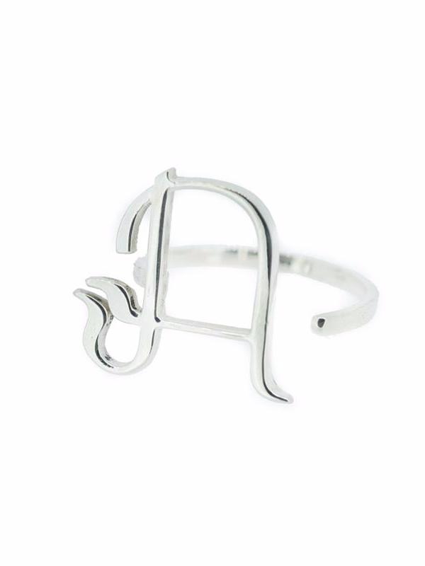 A  Letter ring with customised font by tyopgrapher, Paul Nolan.  Adjustable band to accommodate all finger sizes. 925 Sterling Silver 1.8cm in height Arrives within 10 days.  Crafted in Australia.