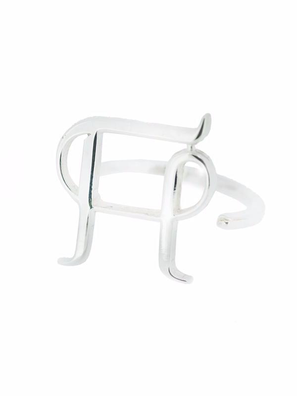H Letter ring with customised font by tyopgrapher, Paul Nolan.  Adjustable band to accommodate all finger sizes. 925 Sterling Silver 1.8cm in height Arrives within 10 days.  Crafted in Australia.