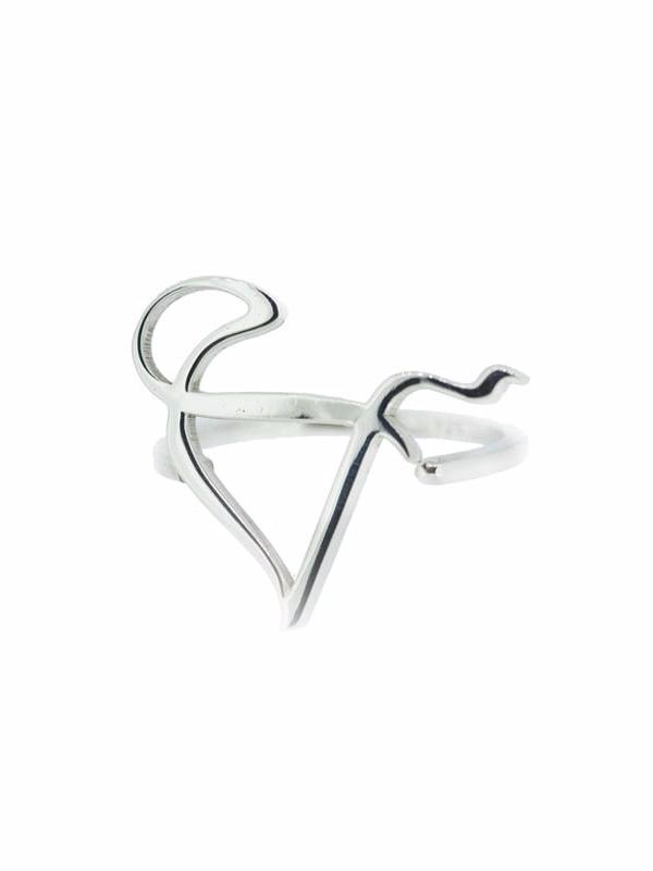 V Letter ring with customised font by tyopgrapher, Paul Nolan.  Adjustable band to accommodate all finger sizes. 925 Sterling Silver 1.8cm in height Arrives within 10 days.  Crafted in Australia.